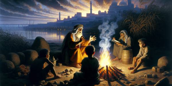 كان الجوّ بارداً حين جلسنا حول الموقد، ولهيب النار يرقص على الوجوه المتيقِّظة. الجدُّ، وكانت لحيته البيضاء تلمع في وهج الضوء، أخذ نفساً عميقاً قبل أن يبدأ حديثه، وصوته يختلط مع حفيف الشجر خارج الدار. “اسمعوا يا أولادي، واذكروا. اذكروا…