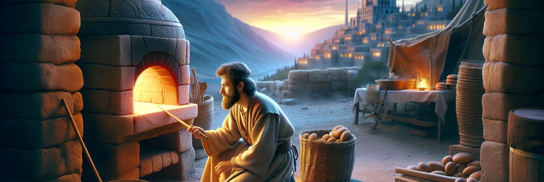 توقف عزارا لينظر إلى النافذة، حيث كانت غيمة سوداء تغطي جبل جرزيم. “كانوا مثل فرن مُحمى ينتظر خبز الغدر. الخبّازون هم رجال البلاط والقادة والكهنة، كل منهم يعجِن عجينته بالخيانة. في الليل، حين ينام الحراس، كانوا يشعلون النار تحت الفرن، وفي الصباح يلتهمون بعضهم بعضاً”.