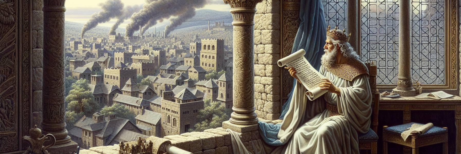 في تلك الأيام، عندما كانت ذكرى سليمان الحكيم لا تزال تهمس في حجارة الهيكل، لكن ظلال الأصنام قد امتدت في أروقته، جلس يوشيا الملك في قصره بالقدس. لم يكن هدوء الليل يريح نفسه، بل كان ثقيلاً كقطعة قماش بللتها الأمطار. تذكر ذلك اليوم، اليوم الذي وجدوا فيه الدرج، وقد كانت كلماته كالنار تأكل أعماقه. كلمات العهد، وكلمات الغضب أيضاً. كانت تذكرة من زمن مضى، زمن نسيته يهوذا، لكن الرب لم ينس.