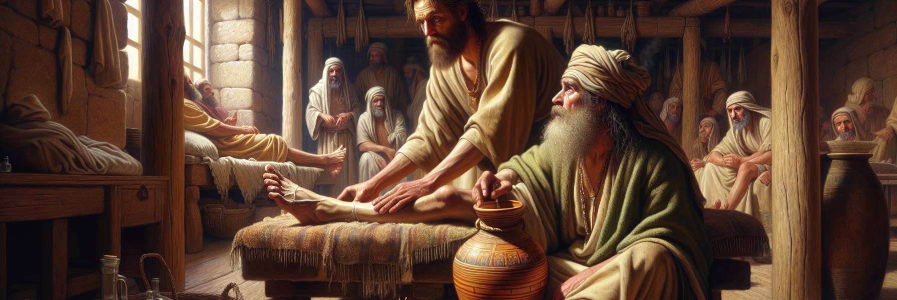 قبيل الفصح بيومين، بينما كان هو جالساً في بيت عنيا في بيت سمعان الأبرص، جاءت امرأة ومعها قارورة طيب نفيس غالٍ الثمن. وبدون تردد، كسرتها وسكبت الطيب على رأسه. انتشر العطر في أرجاء البيت، عطر ناردين خالص ثقيل، يملأ الأنفاس ويلتصق بالثياب. تذمر بعض التلاميذ، بقيادة يهوذا الإسخريوطي، وقالوا: “لماذا هذا الإتلاف؟ كان يمكن أن يباع هذا الطيب بكثير ويعطى للفقراء”. لكن صوت يسوع قطع تذمرهم بهدوء حزين: “لماذا تزعجون المرأة؟ إنها قد عملت بي عملاً حسناً. لأن الفقراء معكم في كل حين، وأما أنا فلست معكم في كل حين. إنها إذ سكبت هذا الطيب على جسدي، فإنما فعلته لأجري تحنيطي. الحق أقول لكم: حيثما يكرز بهذا الإنجيل في كل العالم، يخبر أيضاً بما فعلته هذه تذكاراً لها”.
