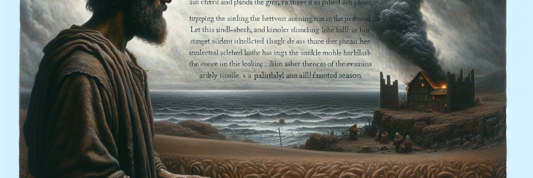 كان النهار يُلفُّ قرية “أيلون” بحرارة ثقيلة، كأنها غطاء من صوف رطب. وقف “أليفاز” على عتبة بيته الطيني، يحدق في الأفق حيث كانت سحبٌ قاتمة تتجمع فوق حقله. لقد بذل كل ما في وسعه طوال الربيع، لكن قلقه كان أثقل من حر الصيف. قبل أيام قليلة، هبت عاصفة لم ير مثلها منذ سنوات، فاقتلعت أغصان أشجار الزيتون العتيقة، وحطمت جزءًا من سقف كوخ التبن. والآن، تُهدد السحبُ ما تبقى من زرعه القليل.