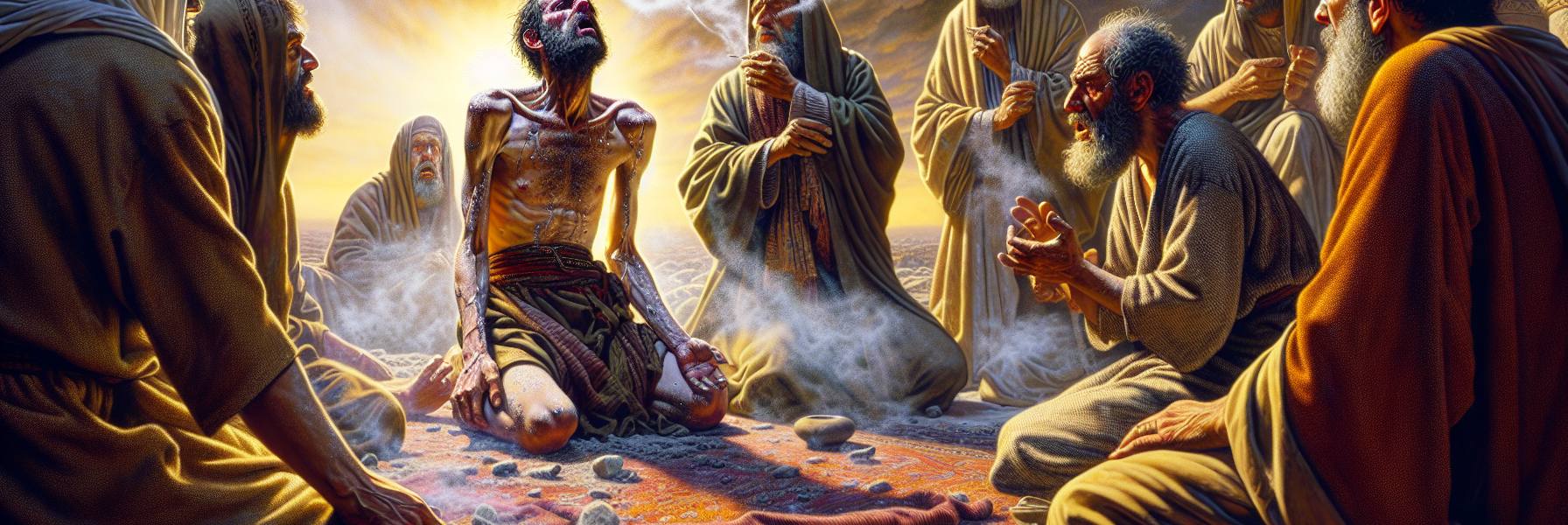 سقط الصمت مرة أخرى، ولكنه كان صمتاً مختلفاً، مشبعاً بتلك الصورة القاسية التي رسمها بلدد. لم ينطق أيوب بكلمة. كان جالساً في رماده، عيناه شاخصتان إلى الأفق البعيد حيث يلتقي التراب بالسماء. كان وجهه لا يظهر غضباً، ولا حتى رفضاً. بل ظهر عليه شيء أشبه بدهشة مريرة، كمن يستمع إلى وصف دقيق لمرض عضال ألمَّ به، ولكن قلبه يصرُّ على أنه تشخيص خاطئ. وكان في عينيه ذلك العمق نفسه، عمق محيط من الأسئلة التي لم تنجح قسوة الصور ولا منطق الحكمة التقليدية في ردمها.