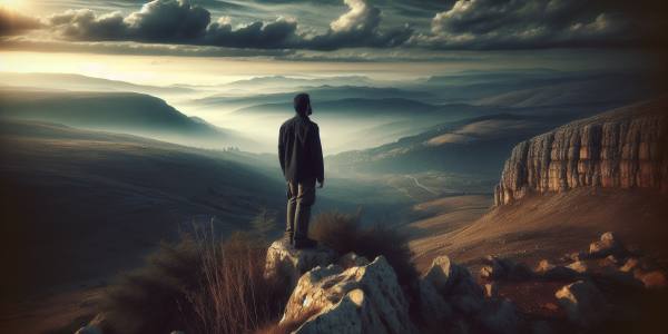 كان النهار يميل نحو الغروب، والسهل الفسيح أمامي يلبس رداءً من السكون المهيب. كنت واقفاً على تلّة تكشف الأفق من جميع جوانبها، كأنها مذبح طبيعي أعدّ للعبادة. في الأعالي، تجمعت سحبٌ ثقيلة بلون الرصاص، متدرجة من الرمادي الفاتح عند الحواف…
