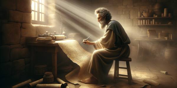 كان سمعان بطرس، الشيخ، جالسًا في غرفته الضيقة في روما. نافذة صغيرة تسمح بدخول ذراع من نور شمس الظهيرة، يلامس الغبار الذي يرقص في الهواء، ويسقط على الرقيم الجلدي الممتد بين يديه. كان الهواء ثقيلًا، حاملاً رائحة الحبر والجلد القديم…