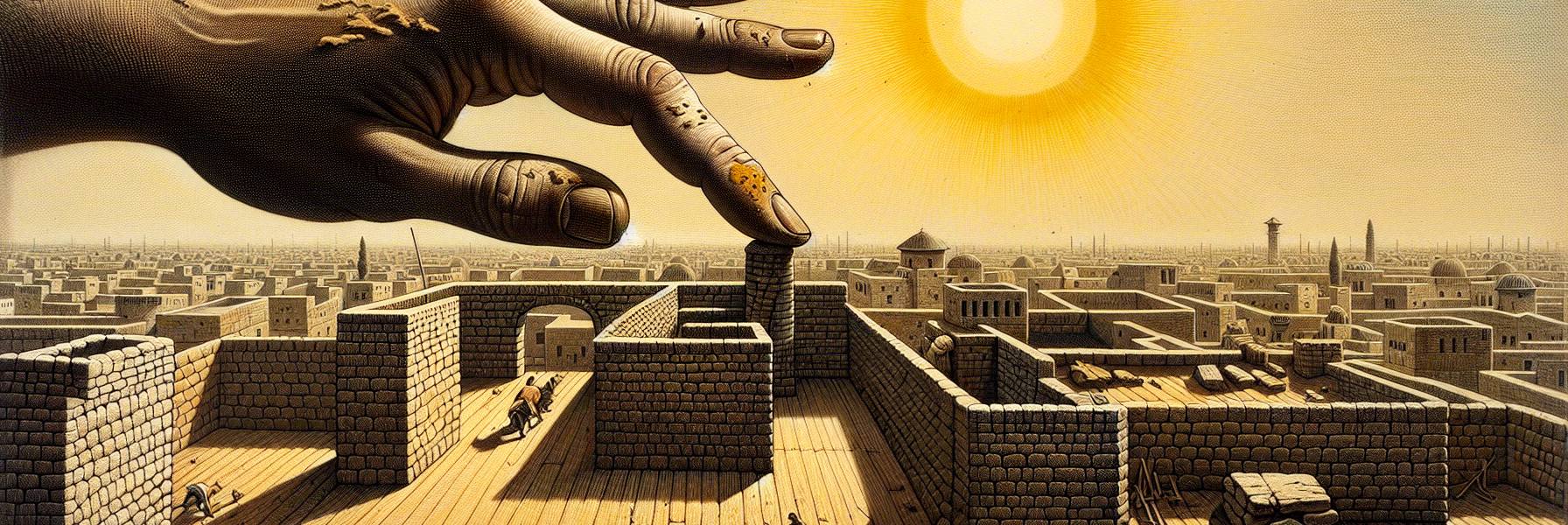 قال لي: “يا ابن آدم”. كانت الكلمات تخرج وكأنها تنحت في هواء المنفى. “خذ لنفسك طابوقة، ضعها قُدّامك، ونقش عليها مدينة، مدينة أورشليم.”