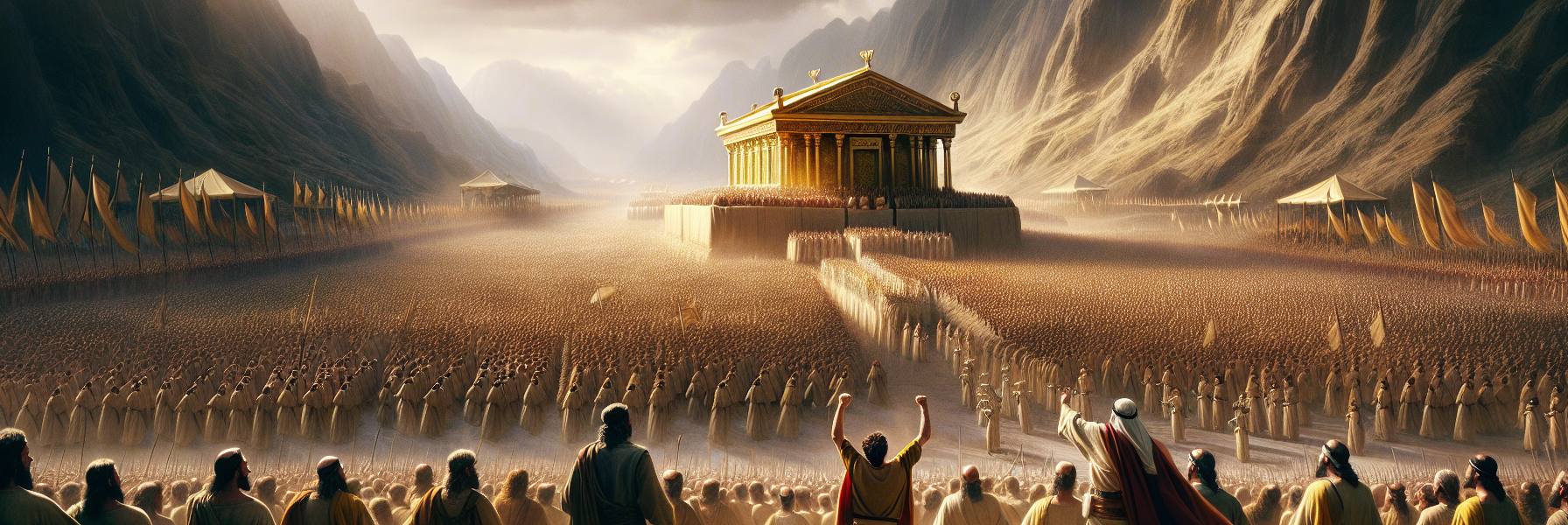 داود، الملك الشاب، كان يتبع وراءهم مع حاشيته. لم تكن خطاه خفيفة كعادته عندما يعدو خلف غنمه قديمًا. كانت ثقيلة، مفعمة بقلق لم يستطع أن يسميه. كانت فكرته كلها إرجاع التابوت إلى قلب الشعب، إلى أورشليم، ليكون الرب في وسطهم. لكن شيئًا في صمت الكهنة، في طريقة تجنبهم النظر المباشر، كان يثقل نفسه. كانت فرحته العارمة عندما قرر نقل التابوت تبرد قليلًا تحت شمس الظهيرة، وتحولت إلى ترقب حاد.