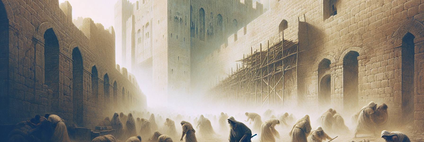 أجاب الرجل، ونبرته تحمل دهشة كمن وجد أمراً عجيباً. “أقيس أورشليم، لأعرف عرضها وطولها. فالرب أمر ببنائها من جديد، فأسوارها يجب أن تكون قوية وحصينة.”