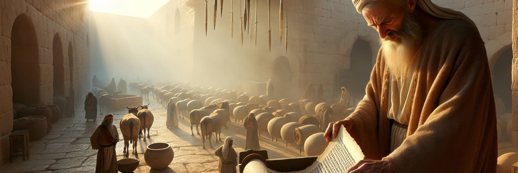 كان الضوء الذهبي للصباح الباكر ينساب عبر نوافذ القصر العالي، حاملاً معه عبق زهر البرتقال من البساتين البعيدة. في الغرفة الواسعة المبطنة بخشب الأرز، جلس سليمان على كرسيه، ليس عرش الملك فحسب، بل كرسي الحكمة الذي منحه إياه الرب. لم تكن العظمة حوله مجرد رخام وذهب، بل كانت نظاماً بديعاً، هدوءاً عميقاً ينبض بترتيب إلهي.