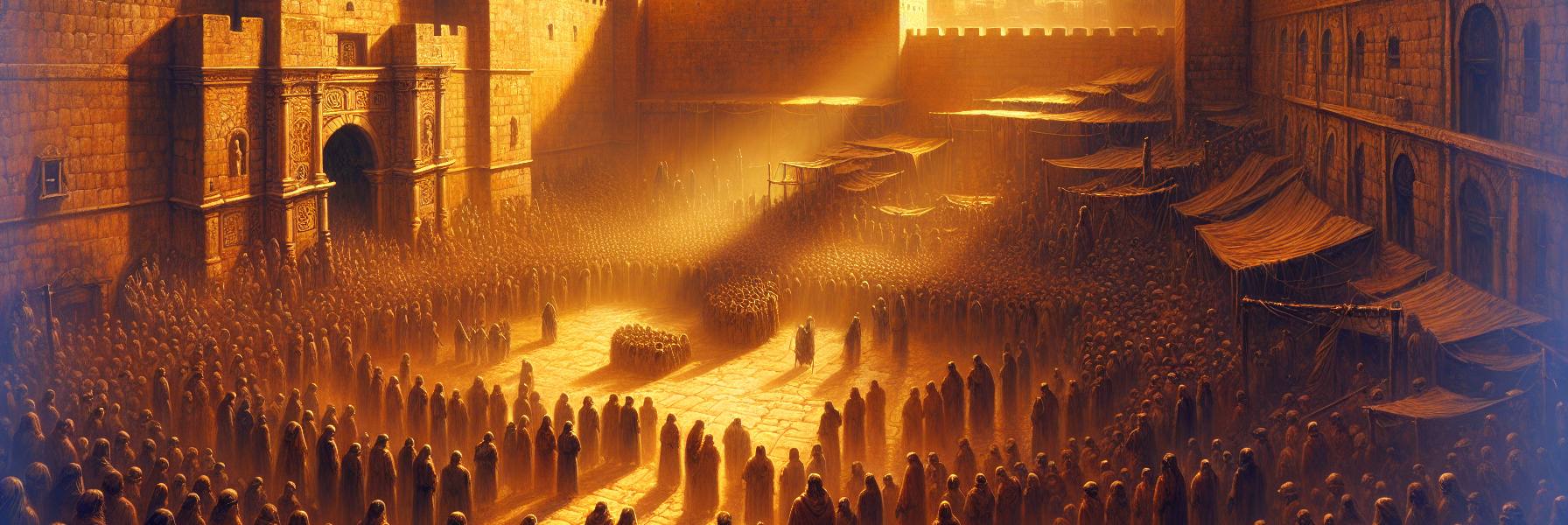 كان الجو ثقيلاً في ساحة الهيكل، والغبار الذي ثار من أقدام الجموع الكثيفة لا يزال عالقاً في الهواء المشبع برائحة الخوف والرجاء. وقف نحميا أمامهم، ولفافة الشريعة محكمة بين يديه، لكنه لم يفتحها اليوم. فالكلمات التي سمعوها بالأمس كانت لا تزال ترن في آذانهم، كدوي رعد بعيد يهز أعماق الروح. لقد عادوا، بعد طول سبي، إلى هذه الأرض، لكنهم أدركوا بالأمس فقط كم كانوا بعيدين عن شرائعها، عن عهدها.