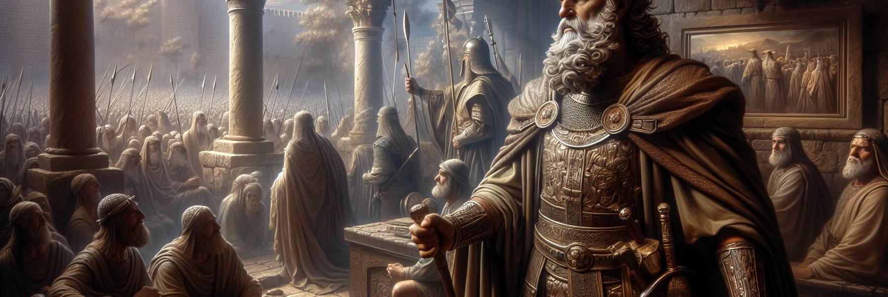 كان النهار يميل نحو المغيب، وشعاع الشمس الأخير يتسلل عبر نوافذ القصر العالي، ملامسًا تاج الملك الذهبي الموضوع على وسادة من الحرير الأرجواني. داود جالس على كرسيه، وقد أرهقته سنوات الحكم الطويلة، ولكن ما أثقله في تلك اللحظة كان سكون المملكة. سكونٌ لم يعرفه من قبل. أخيرًا، هدأت الحروب، واستقرت الحدود، وصارت أورشليم حصنًا منيعًا. لكن في أعماقه، شيءٌ ما كان يتدلى كغيمة سوداء صغيرة.