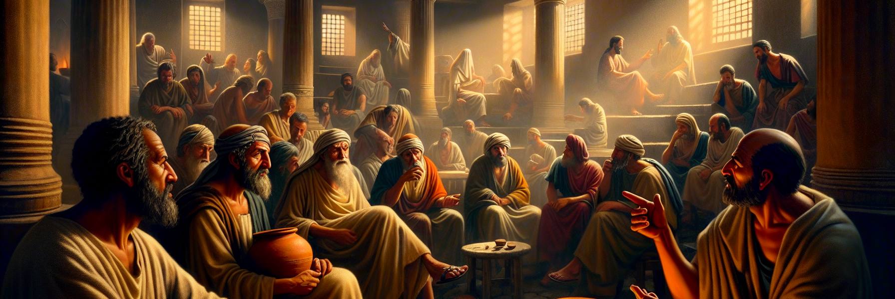 تلك الليلة، بينما كانت مصابيح الزيت تلقي بظلال متهادية على الجدران، دعا أخيلاس عددًا من الإخوة. لم يكن الاجتماع رسميًا، بل جلسوا على الحصير، يتشاركون خبزًا وزيتونًا. بدأ يتحدث، ليس كمعلم، بل كخادم متألم. “أتذكرون”، قال وصوته خافت، “عندما آمن ستيفاناس الفقير، الذي لا يملك سوى ثوبه البالي؟ لم نسأله إن كان يتبع خطاب أبولّوس أم منطق بولس. احتضناه ببساطة لأنه أخ في المسيح.”