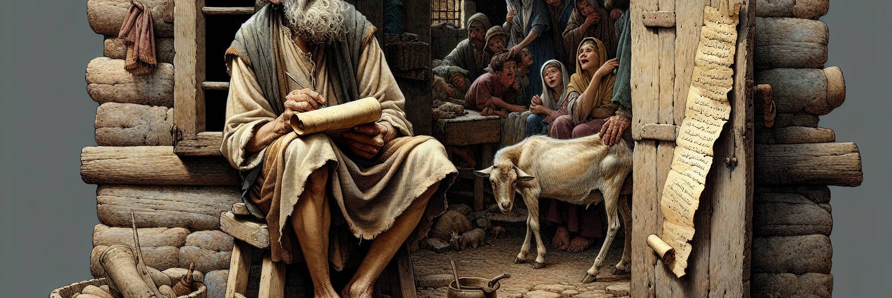 “يا بُنيّ،” قال، بينما كانت عيناه الرماديتان تشعان بنورٍ داخليّ عميق، “يُخبرنا الكاتب القديس أن أياماً ستأتي فيها مستهزئون، يسيرون وراء شهواتهم الخاصة، ويقولون: ‘أين هو موعد مجيئه؟’.” سكت قليلاً، ونظر إلى اللهب المتأرجح. “تراهم الآن، يعيشون كما لو أن الزمن دائريّ لا خطّيّ، وكأن العدالة الإلهية خرافة ألّفها الخائفون.”