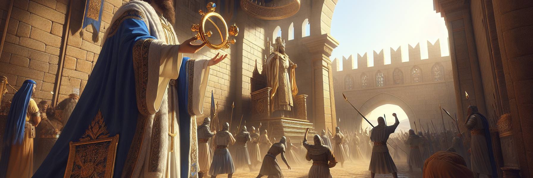 فهمت أستير. نهضت، وحريرها يهمس على الرخام، وتوجهت إلى الديوان الملكي حيث يجلس أحشويروش. كان عرشه منحنياً من العاج والذهب، ولكن عينيه حملتا نظرة لم تكن هناك من قبل: نظرة رجل أدرك كيف كادت المؤامرة تلفه هو أيضاً. عندما سقطت على ركبتيها، مد يده بقضيب الذهب قبل أن تلمس الأرض.