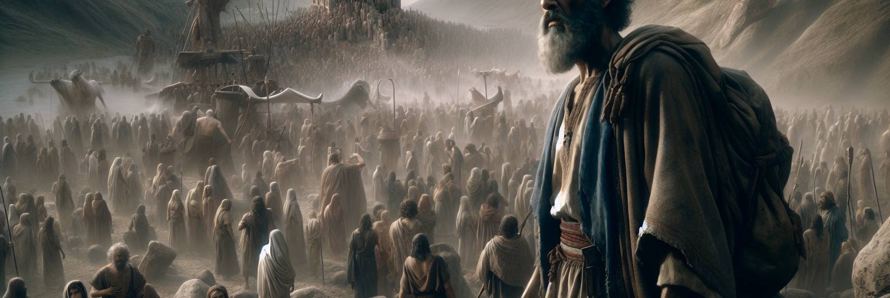 ثم جاء اليوم الذي قرر فيه صموئيل أن يدعو الجميع، كل شعب إسرائيل، إلى لقاء عام في المصفاة. والمصفاة، تلك التلة المطلة على الطرق، كانت مكانًا للحكم وللاجتماعات المصيرية. انتشر الخبر كالنار في الهشيم. جاءوا من كل مكان، رجالًا ونساءً وأطفالًا، وجوهًا شاحبة تحمل آثار سنوات الذل، وأخرى متوقدة بتوق لا تعرف مصدره. تجمعوا على المنحدرات، صامتين في غالبيتهم، والجو ثقيل بثقل انتظار لم يعتادوه.