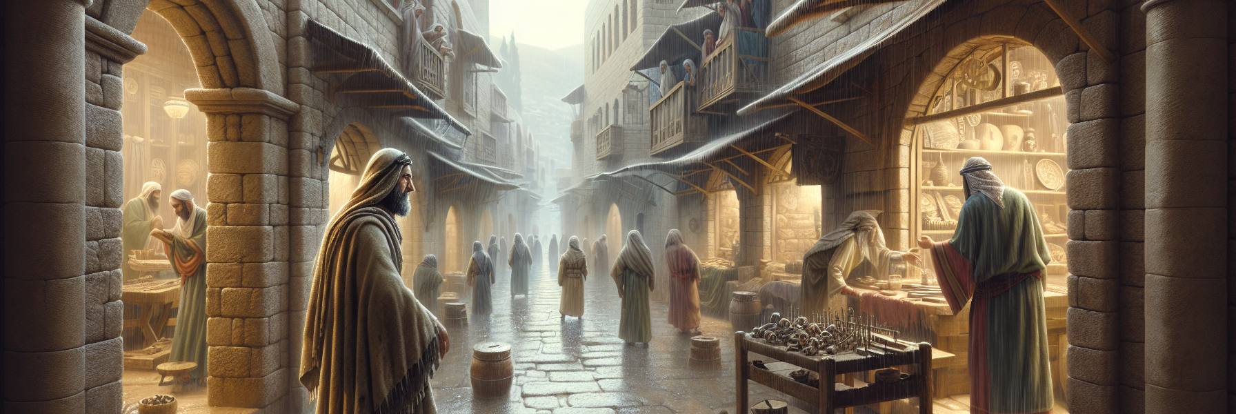 كان الجوُّ في أورشليم تلك الأيام حارّاً وكئيباً، كأنما السماء نفسها تُثقَلُ بهمومٍ لا تُحتمل. في حارةٍ ضيقةٍ قرب السور، حيث تتصاعدُ روائح الزيت المحروق والخشب الرطب، جلس حنانيا على عتبة بيته المُتهالك، ينظر إلى شارعٍ صاخبٍ بالحركة. كانت المدينة تغلي كما القدر على النار. من كل فجٍّ، كانت تصلُ أصوات الطرق على المعادن، وصيحات الباعة، وأناشيد غريبة مختلطة بدقّ الطبول.