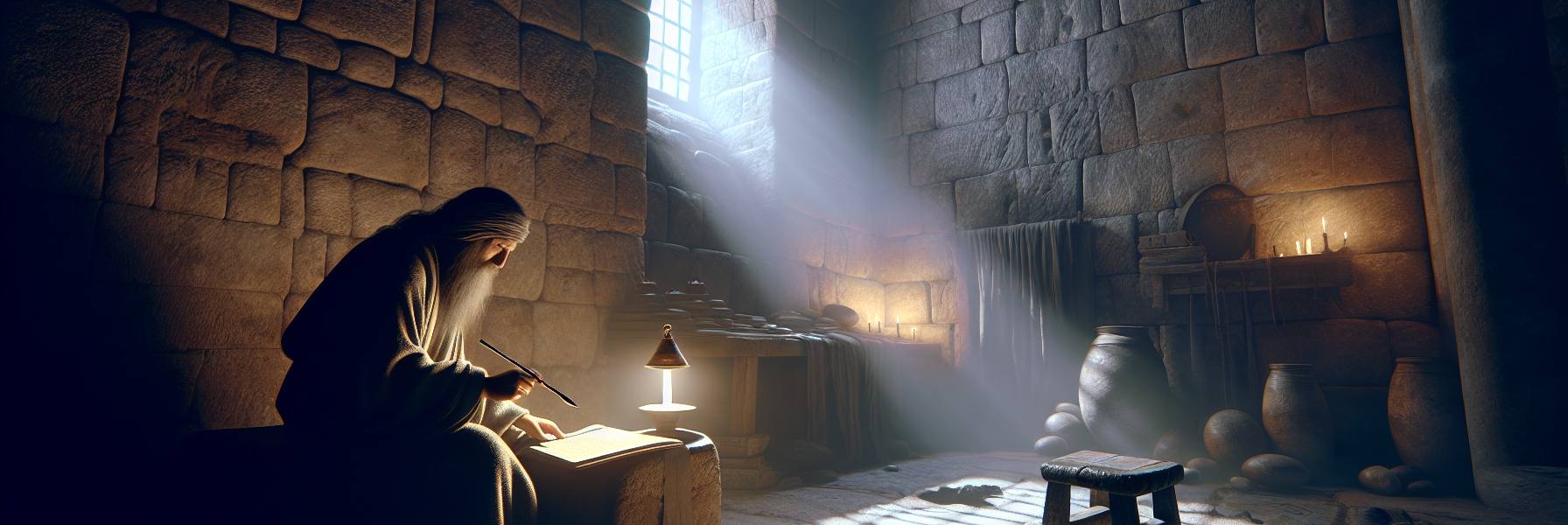قام فجأة، وكأن صاعقة مسّت قلبه. خرج من بيته مسرعاً، لا يعرف وجهته. مشى عبر الحقول اليابسة، حتى وصل إلى مكان خلاء، حيث لا يسمع إلا حفيف الشوك ونداء الغربان. هناك، سقط على ركبتيه. لأول مرة منذ سبعة أشهر، رفع عينيه إلى السماء. لم يقل كلمات منمقة، لم يقرأ صلاة مكتوبة. انفتح فمه، وانهمرت الكلمات كسيل جارف، معترفاً بكل شيء، غير مخفٍ شيئاً، كطفل يبكي بين يدي أبيه.