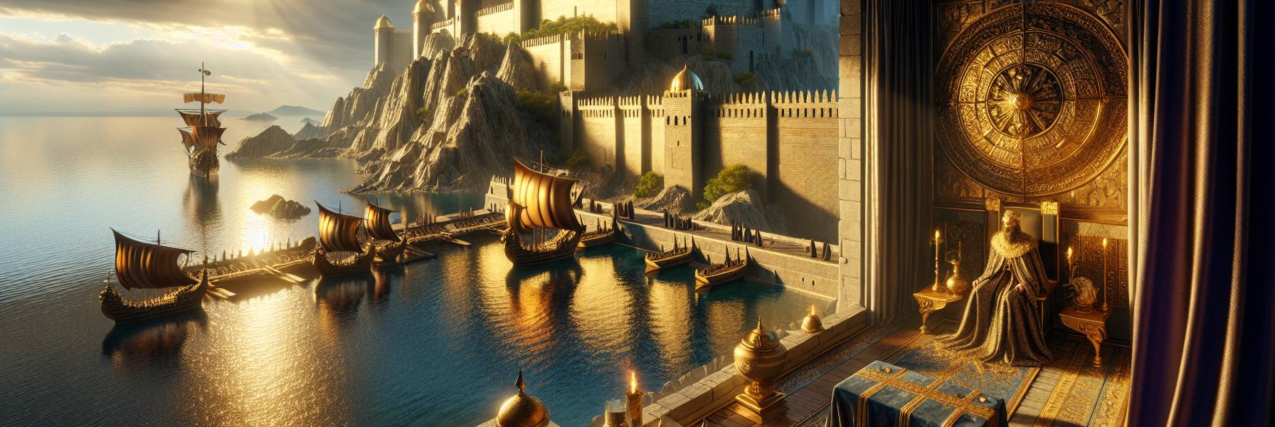 كان البحر الأبيض المتوسط يهمس بأمواجه الزرقاء الداكنة على صخور جزيرة صور. وفي القصر المشيد من أرز لبنان والمرصّع بصفائح الذهب، جلس الملك على كرسيّ من العاج، تنبعث من ثيابه رائحة كلّ أفخر العطور: القرفة والخزامى والمرّ. كان يعتقد نفسه في أمانٍ أبديّ، محميّاً بأسطوله الذي لا يُقهر وبحكمته التي تظنّ أنها لا تحدّها حدود.
